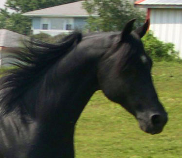 One Midnite Dream is Whispering Hills' black stallion. Though young, he shows great promise as a sire. His pedigree is impeccable. His sire is Opus One +, who is a Canadian National Futurity Reserve Champion and two time Canadian National Top Ten and a son of AAF Kaset +, by Aladdinn. Midnite's dam, Zaahin Haalim, is the daughter of halter champion Bey Ninja (Bey Shah+), and carries three crosses to *Bask ++, one through U.S and Canadian National Champion MS Santana.